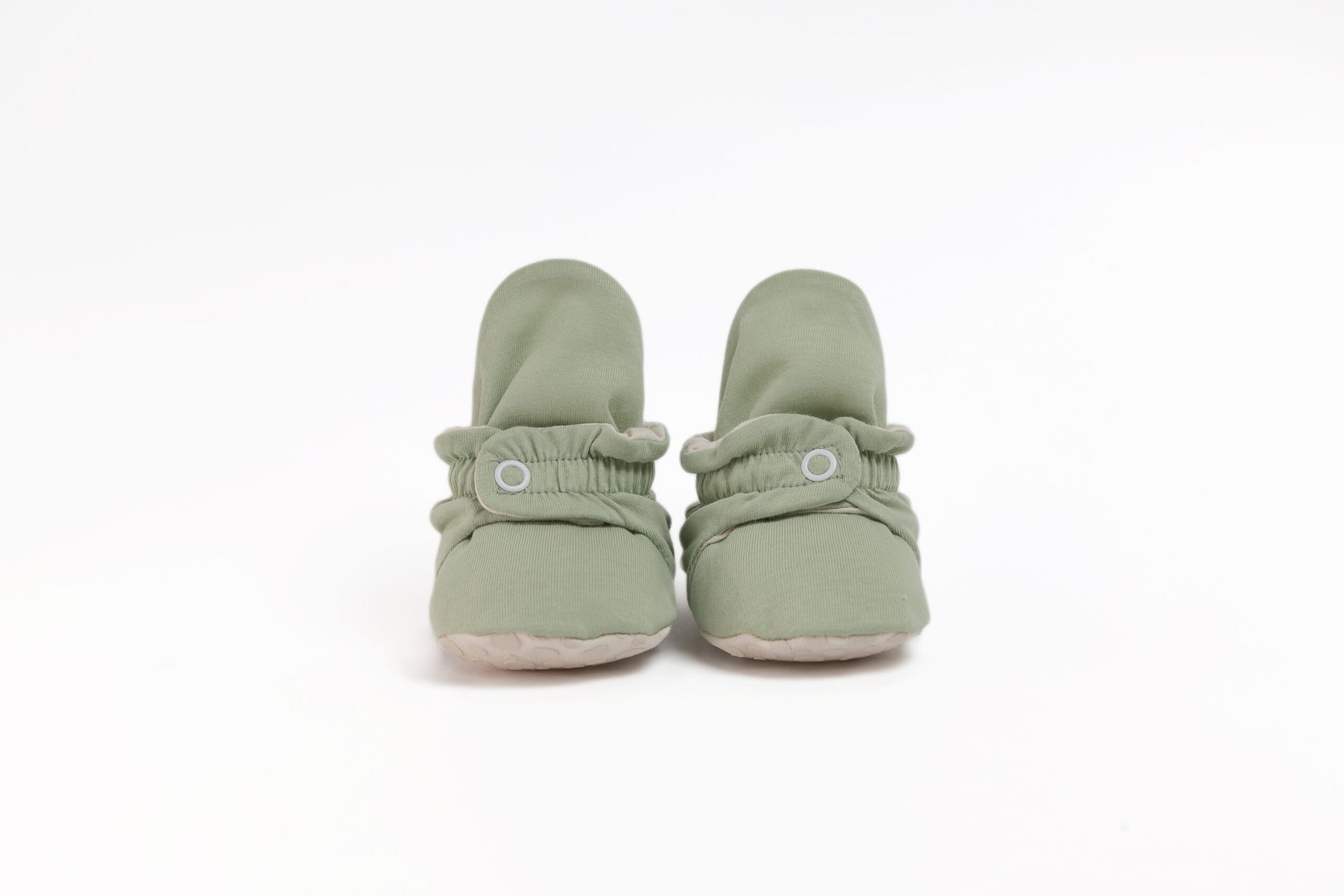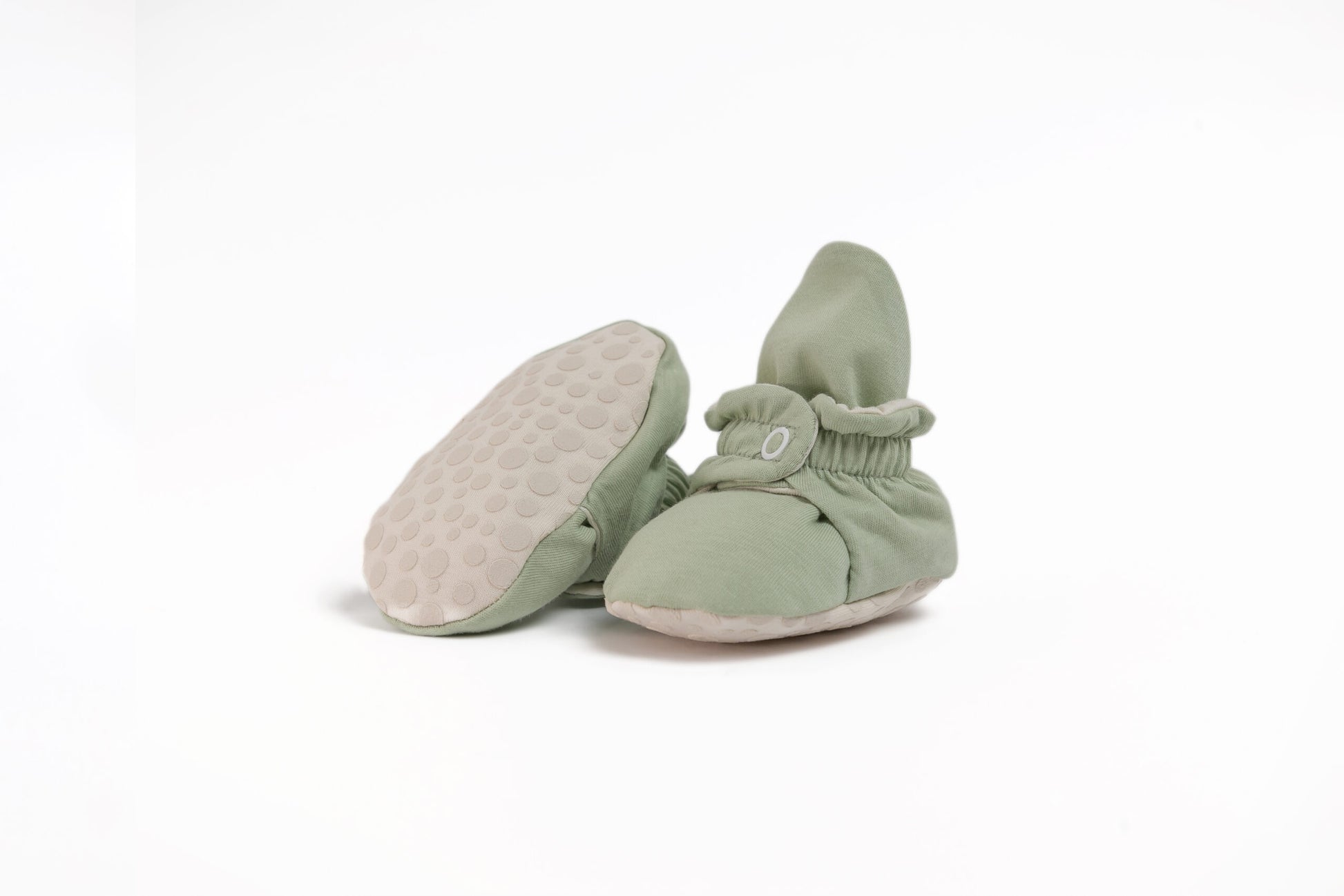Os modelos têm formato tipo meia e são confecionados em algodão orgânico extra fino, muito respirável e confortável. Antes dos 6 meses são usados como meias de proteção, e a partir dos 6 meses incluem sola antiderrapante, ideal para quando começam a explorar o mundo com mais autonomia.