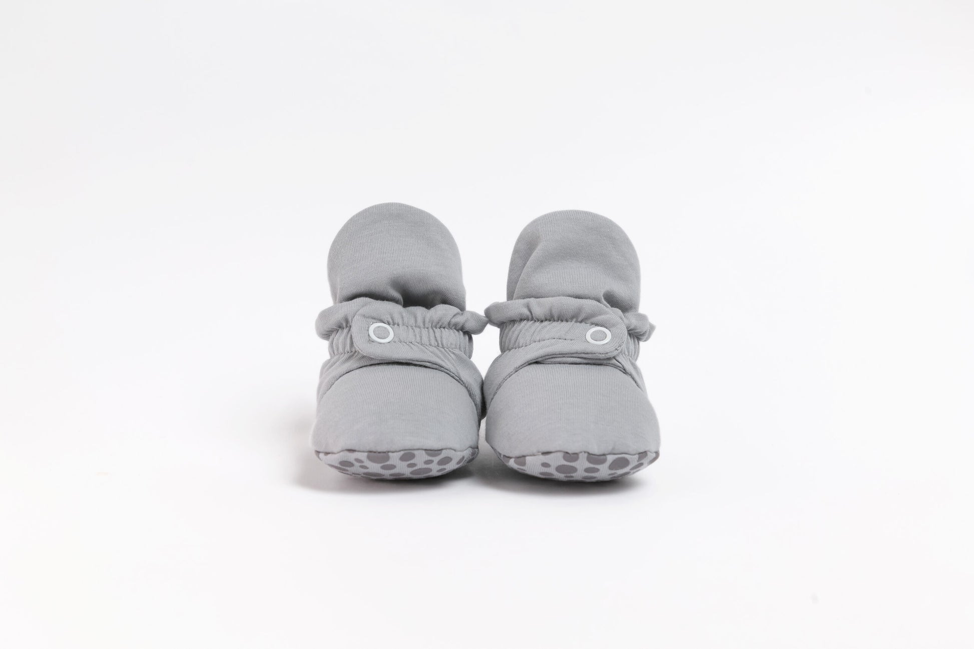 Os modelos têm formato tipo meia e são confecionados em algodão orgânico extra fino, muito respirável e confortável. Antes dos 6 meses são usados como meias de proteção, e a partir dos 6 meses incluem sola antiderrapante, ideal para quando começam a explorar o mundo com mais autonomia.